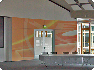 Motivwände für Pressekonferenzen, LKW Beschriftungen für LSG-Skychiefs (Lufthansa Catering-Service), Stoffwände und Bannersysteme für Messen und Präsentationen. Hier zu sehen: Lufthansa Pressewand in einem Konferenzraum der Lufthansa.
