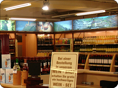 hinterleuchtet montiert oberhalb diverser Weinregale in unterschiedlichen Größen. |